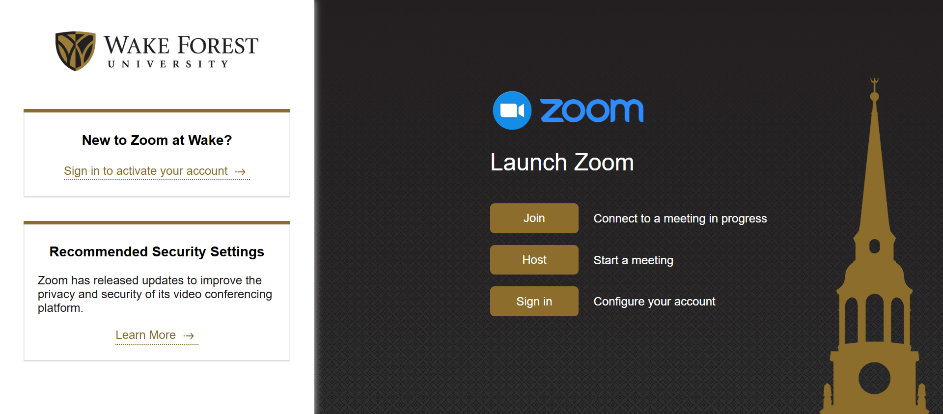 • Go to zoom.wfu.edu and sign in with your WFU credentials. You may wish to sign in to Zoom 5-7 minutes before the SAC meeting begins, just to give you time to log in.